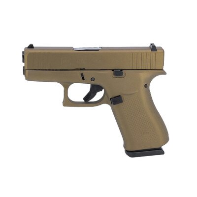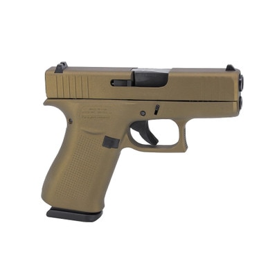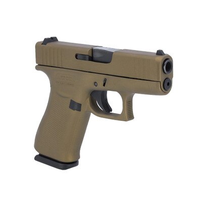 Chambered in 9mm Luger the G43X features a compact Slimline frame. The 10-round magazine capacity makes it ideal for concealed carry. Designed for comfort, The G43X combines a compact-size grip length, a built-in beaver tail and a subcompact-slim slide for a comfortably balanced, versatile grip that's ideal for a variety of users. The frame incorporates elements of the Gen5 and Slimline series such as the short trigger distance, a frame with a built-in beavertail, a reversible magazine catch and the incredibly accurate, match-grade GLOCK Marksman Barrel (GMB) and precision-milled front serrations. This model features a Skydas Exclusive Burnt Bronze Cerakote.