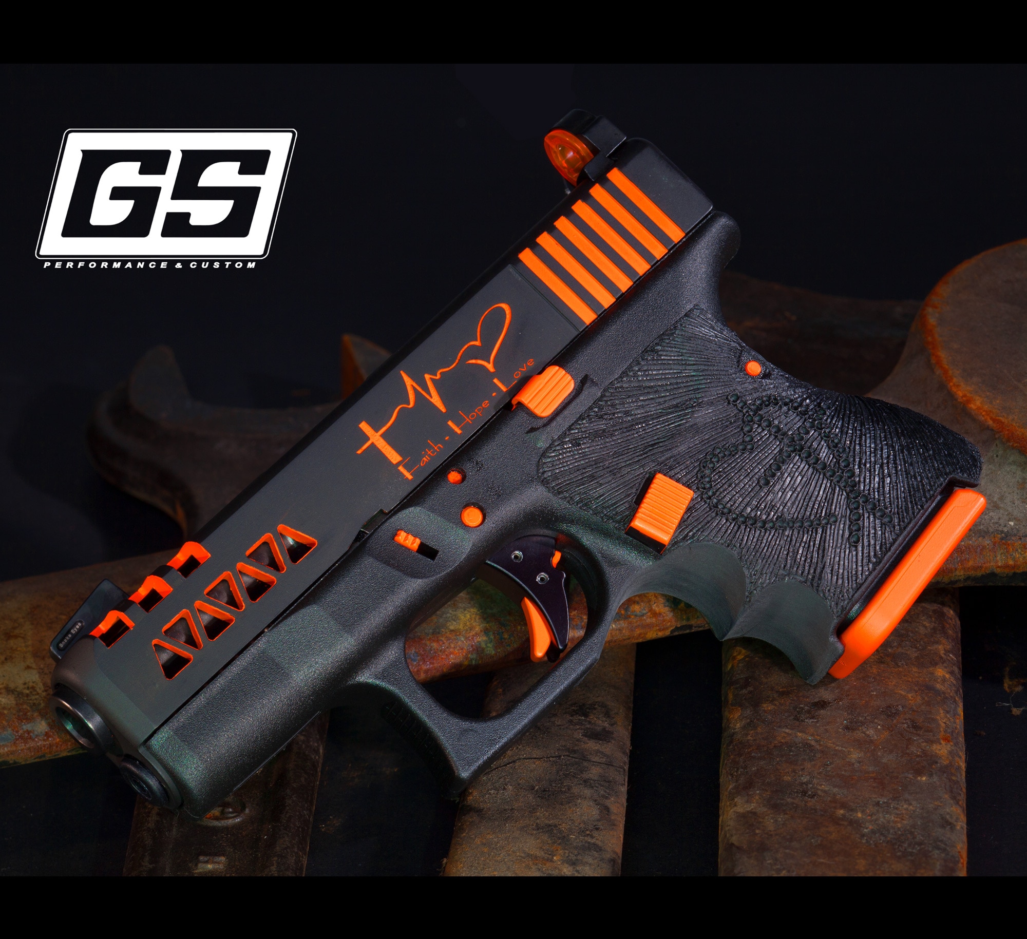 custom gun of your dreams. Keep in mind, you can mix and match colors, slide cuts, stippling, engraving, and custom parts and accessories. Visit our Custom Engraving Gallery for custom engraving examples.