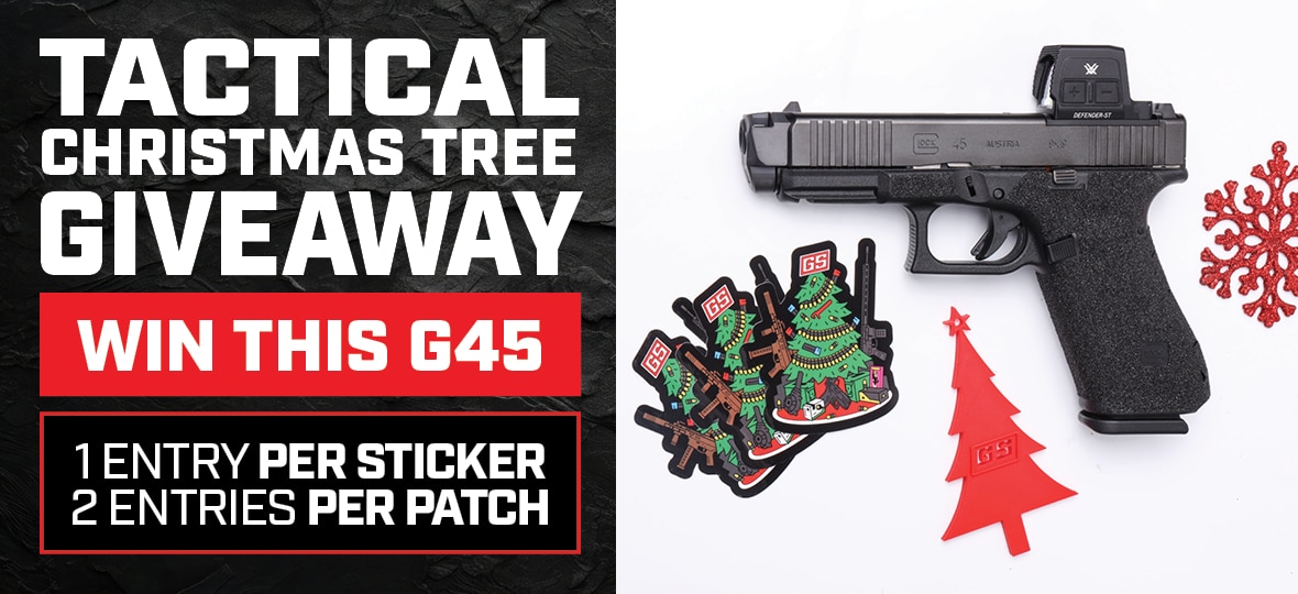 Every approved order that contains either a Tactical Christmas Tree Sticker (#5351) or Patch (#5352) placed between Dec. 1, and Dec. 31, 2025, will also be an auto entry to win a Glock45 MOS with HandleItGrips; our new & improved Thug Plug; a Radian Ramjet with Afterburner; and the Vortex Defender Enclosed ST!